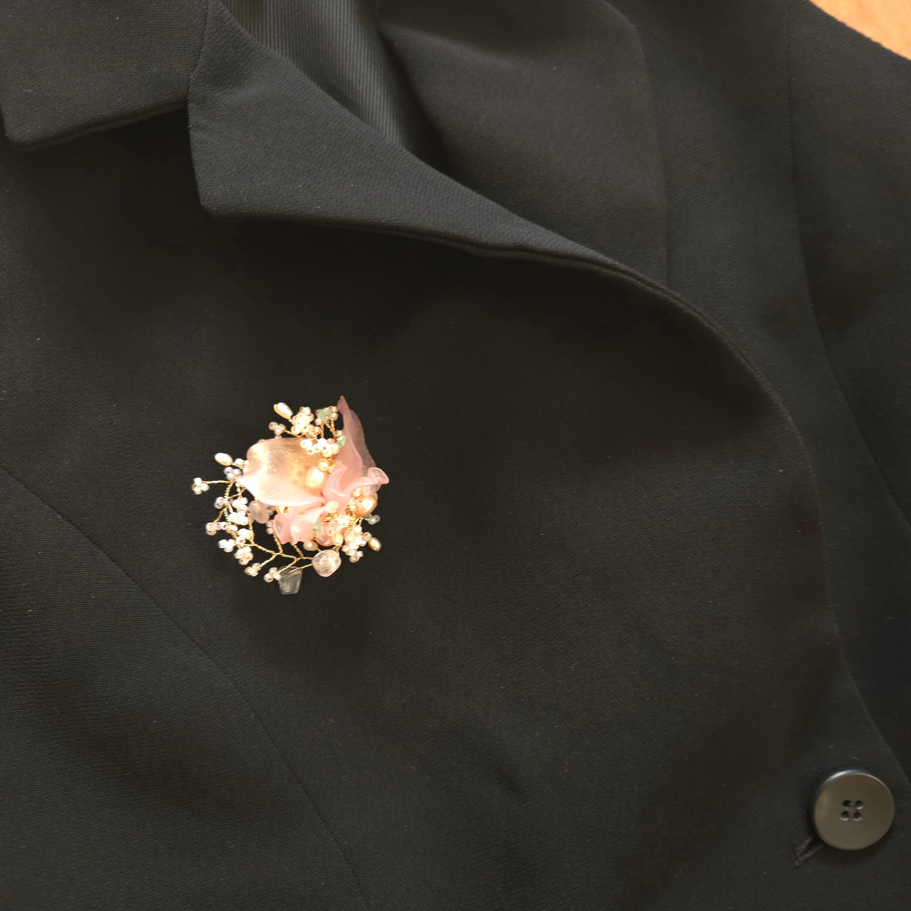 黒のお洋服、小物に合わせると、よりブローチが美しく際立ちます✨