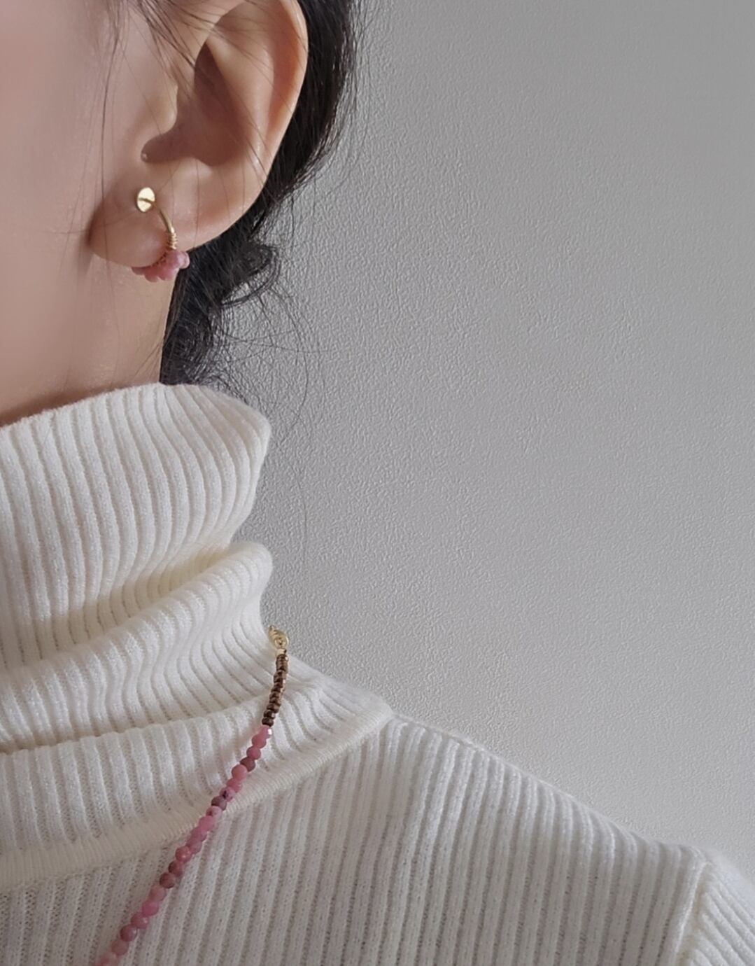 お揃いのピアス、イヤリングもご用意しております。あわせてお使いいただくだけで、お洒落が叶う、便利なアイテムです!