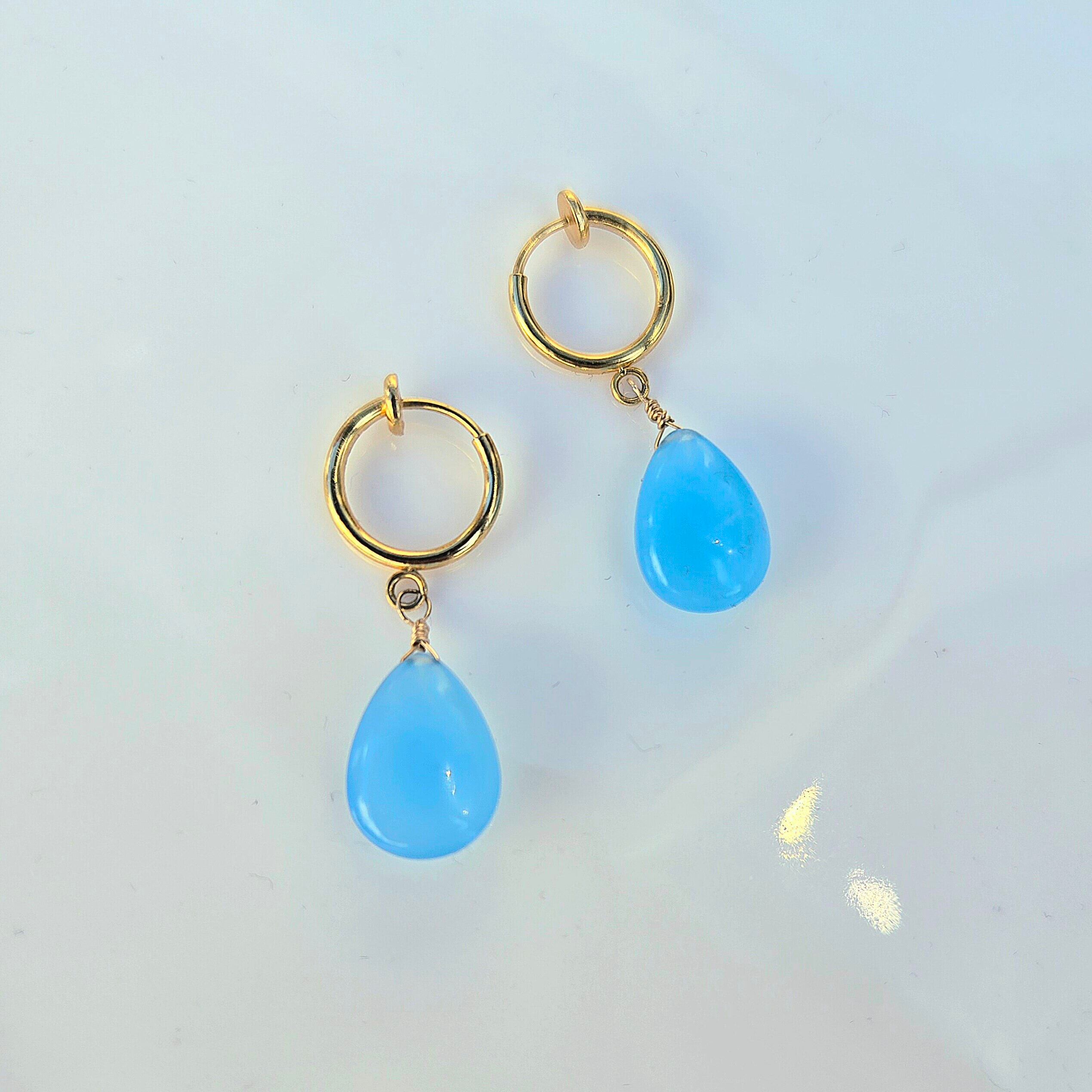 ~1歩を踏み出す勇気を与える~ 一粒天然石のアクセサリー 《evolution》シリーズ・【ブルーカルセドニー】 ピアス・イヤリング