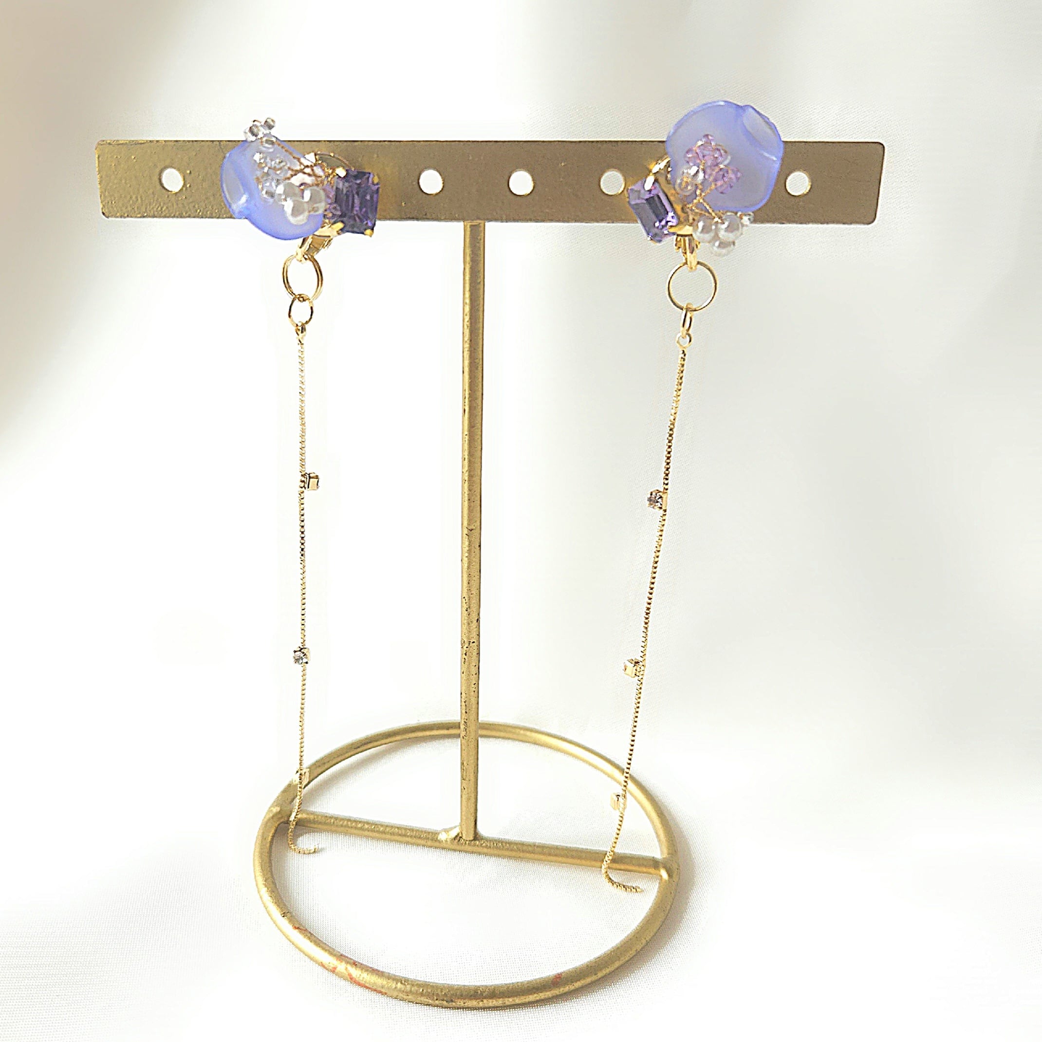 イヤリングはゆれるモチーフのフープを金具に通して取り外しが可能です。)