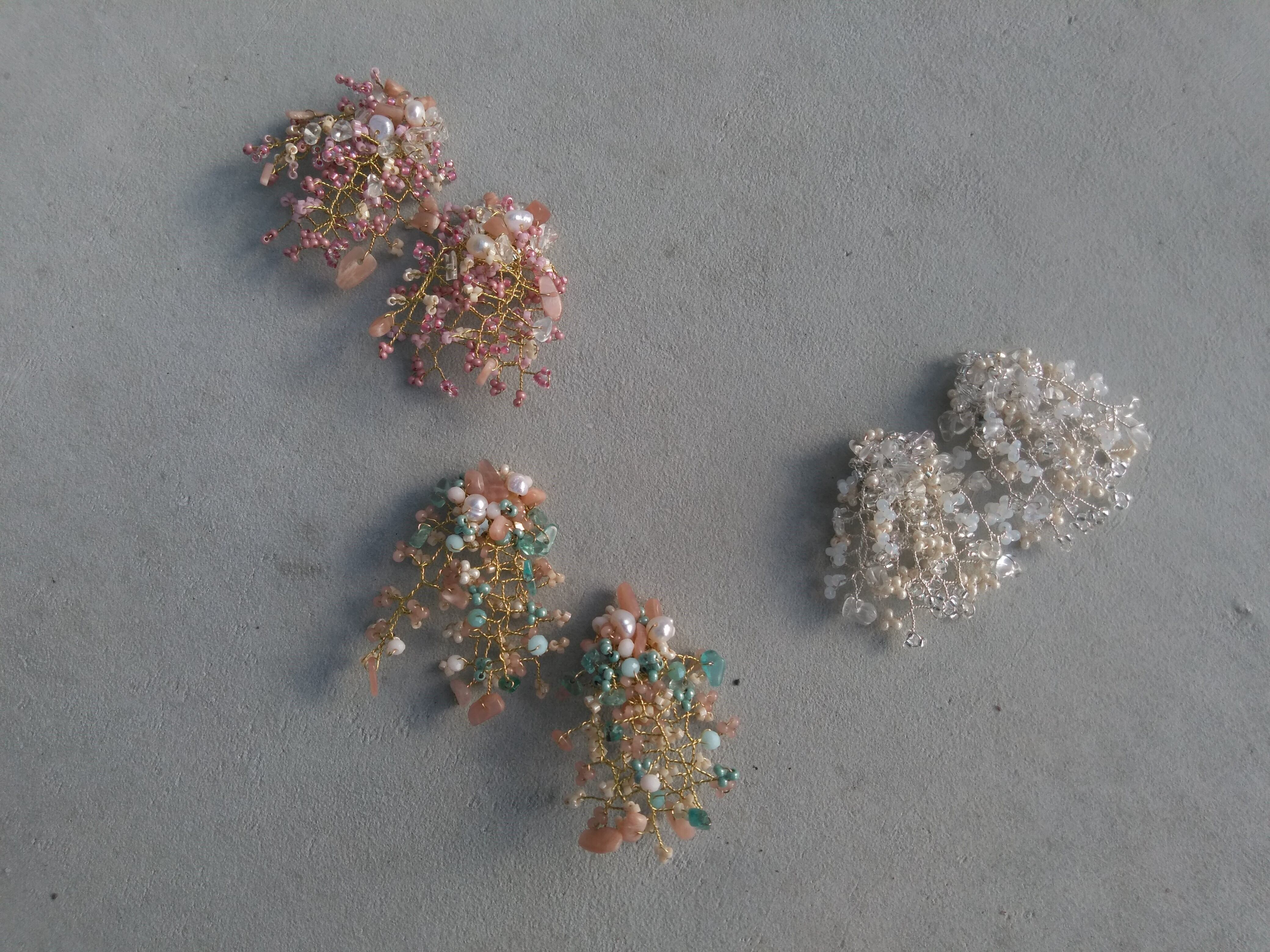 bouquetシリーズは、自然の景色をはじめ、日常の風景や目に見えない気持ち・・を私の感性のままに、花束の形にギュッと凝縮して、天然石を使用し、アクセサリーにしています。