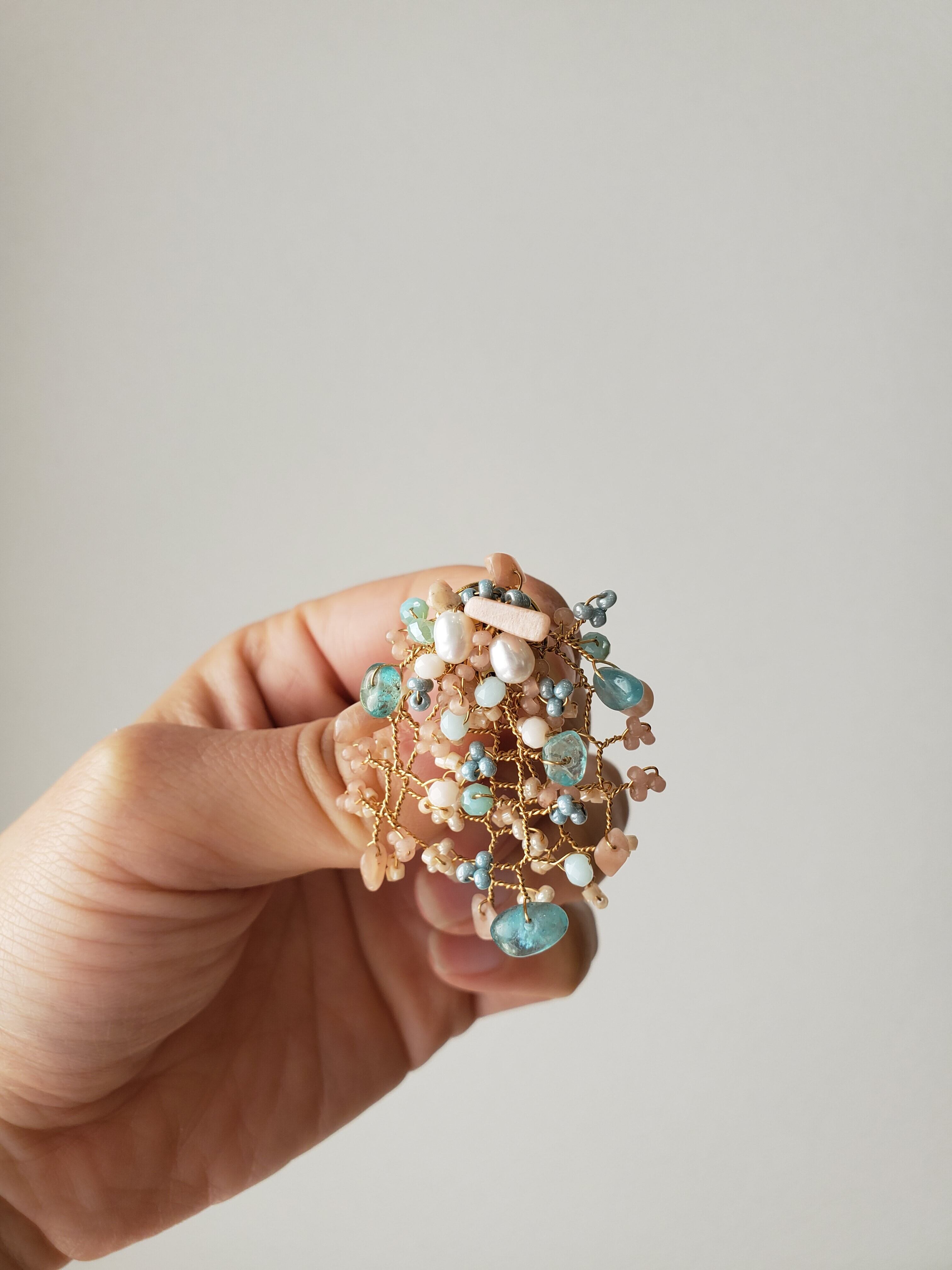bouquetシリーズは、自然の景色をはじめ、日常の風景や目に見えない気持ち・・を私の感性のままに、花束の形にギュッと凝縮して、天然石を使用し、アクセサリーにしています。
