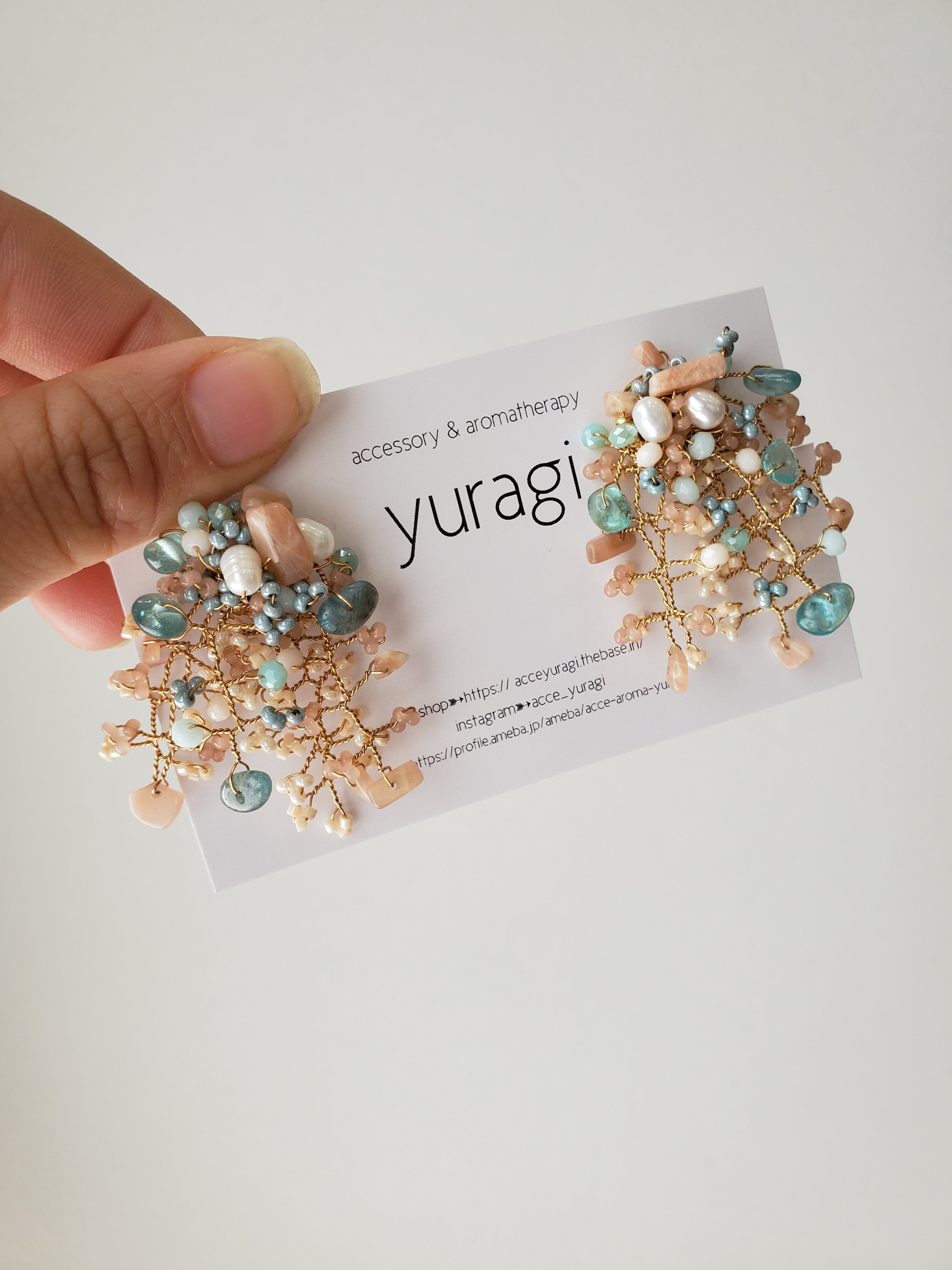 柔らかい色味ですが、対極にある色のコントラストを楽しんで頂けるアクセサリーです!